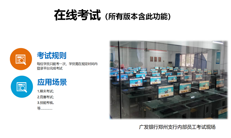 您的位置:首頁(yè) > 產(chǎn)品中心 > 在線(xiàn)考試系統(tǒng)